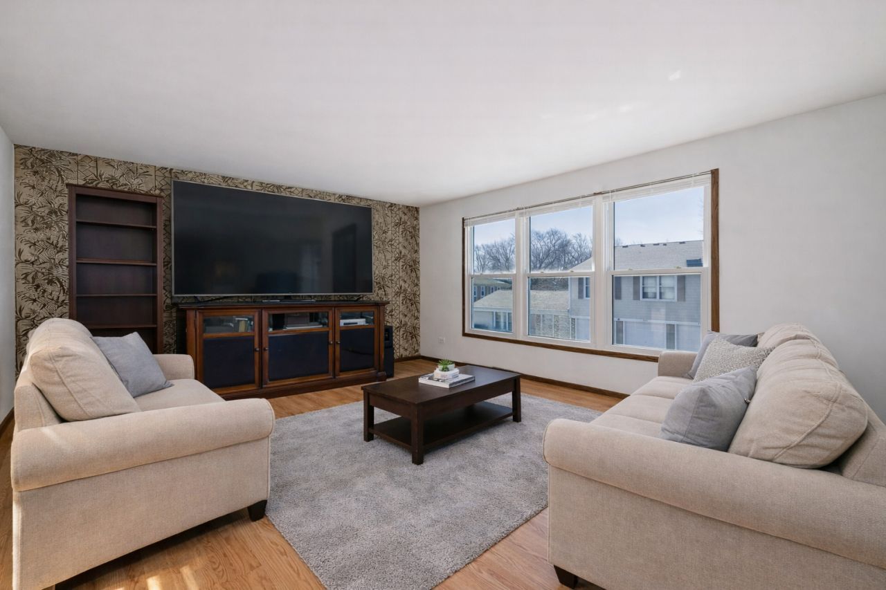 Welcome to Nantucket Cove, where comfort, privacy, and everyday convenience come together in this top-floor penthouse condo. Set within a well-maintained quadraplex, this end unit offers a quiet setting with abundant natural light and scenic views of the beautifully landscaped grounds. A private entry from the attached one-car garage leads to an interior staircase, while a separate front entrance provides easy access for guests. The living room is filled with natural light and flows effortlessly into a dedicated dining area and an inviting eat-in kitchen. Designed for both functionality and ease, the kitchen offers generous counter space, room for a dining table, and a sliding door that opens to a private balcony overlooking mature trees and green space. The expansive primary bedroom comfortably fits a king-size bed and offers a walk-in closet along with direct access to the full bath. With its generous layout, the primary offers flexibility for a sitting area, home office or fitness equipment. The bathroom also features a second hallway entrance, providing convenient access for guests and the second bedroom. Additional highlights include an in-unit washer and dryer, and an attached one-car garage with driveway parking, plus ample guest parking within the community. Residents enjoy access to amenities including an outdoor pool, pond, parks, playgrounds, and open green space. Ideally located in Schaumburg, this home offers close proximity to O'Hare International Airport, Metra, and major expressways, making commuting a breeze. Enjoy nearby shopping, dining, and entertainment at Woodfield Mall, along with local attractions like LEGOLAND Discovery Center Chicago, and Spring Valley Nature Center & Heritage Farm. Located within sought-after School Districts 54 and 211, including Conant High School, this home offers an exceptional opportunity to enjoy low-maintenance living in a highly desirable location.